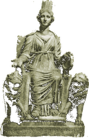SHE GOVERNED THE WHOLE OF NATURE, AND WAS, IN FACT, CONSIDERED THE PERSONIFICATION OF NATURE'S POWERS OF GROWTH. SHE IS THE EARTH ITSELF. "CYBELE" WAS GENERALLY REPRESENTED AS A ROBUST WOMAN, FAR ADVANCED IN PREGNANCY, TO INTIMATE THE FECUNDITY OF THE EARTH. SHE HELD KEYS IN HER HAND, AND HER HEAD WAS CROWNED WITH RISING TURRETS, AND SOMETIMES WITH THE LEAVES OF AN OAK. SHE SOMETIMES APPEARS RIDING IN A CHARIOT DRAWN BY TWO TAME LIONS. HER CONSORT, "ATTIS", FOLLOWS BY HER SIDE. SOMETIMES SHE IS REPRESENTED WITH A SCEPTRE IN HER HAND, AND HER HEAD COVERED WITH A TOWER WHICH IS A SYMBOLIC REPRESENTATION OF A CITY WALL. SHE IS ALSO SEEN WITH MANY BREASTS AS SHE DRIVES A cHARIOT DRAWN BY LIONS AND WAS ALSO ASSOCIATED WITH BEES.